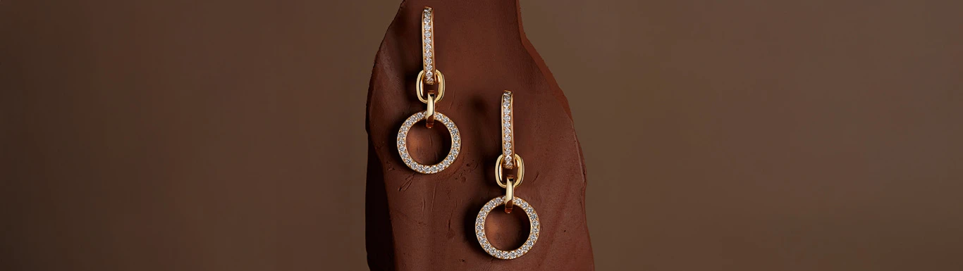 Aros solitarios y argollas en oro rosa 18k y pavee de brillantes