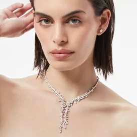 Gargantilla en oro blanco 18 k y brillantes en distintos cortes