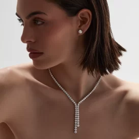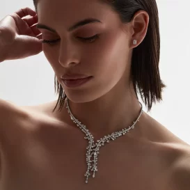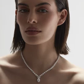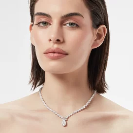 Gargantilla en oro blanco 18k y brillantes certificados con gota central de brillante